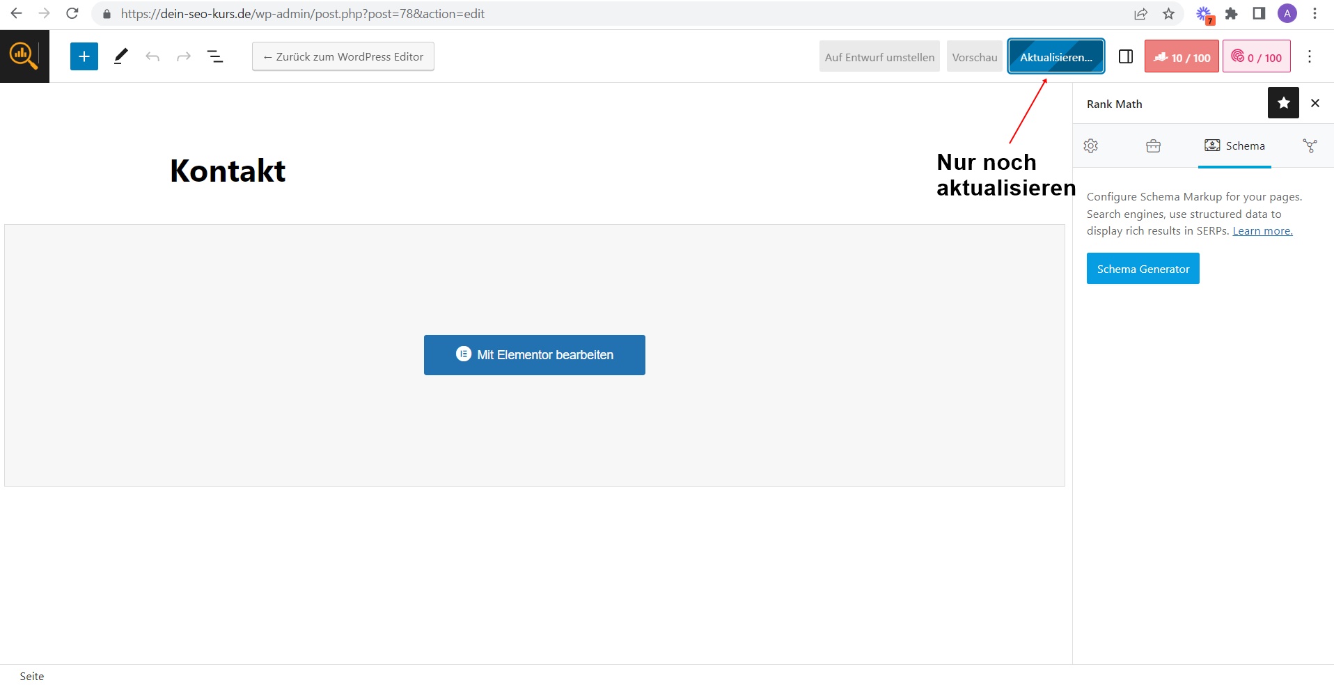 Noch einfacher geht es an dieser Stelle bei Rank Math SEO. Hier musst du nach der Vorarbeit aus Schritt 1 nur noch die Seite aktualisieren.